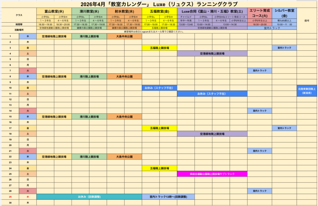 2026年4月の教室スケジュールになります!(*^^*)4月より射水教室が開講します(*^^*… -