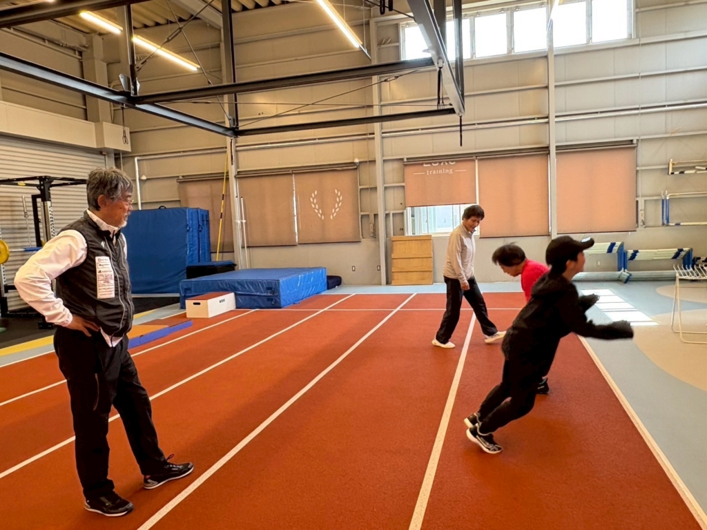 導入は、アブゾープジャンプで着地の際、音を消すジャンプです。イメージとしては、薄氷の上に乗っかる感じで、細心の注意をはらう必要があります。前後左右、両足、片足と無理のない範囲で取り組みました。「足がパンパン」と疲労を訴えながらも頑張っていらっしゃいました。