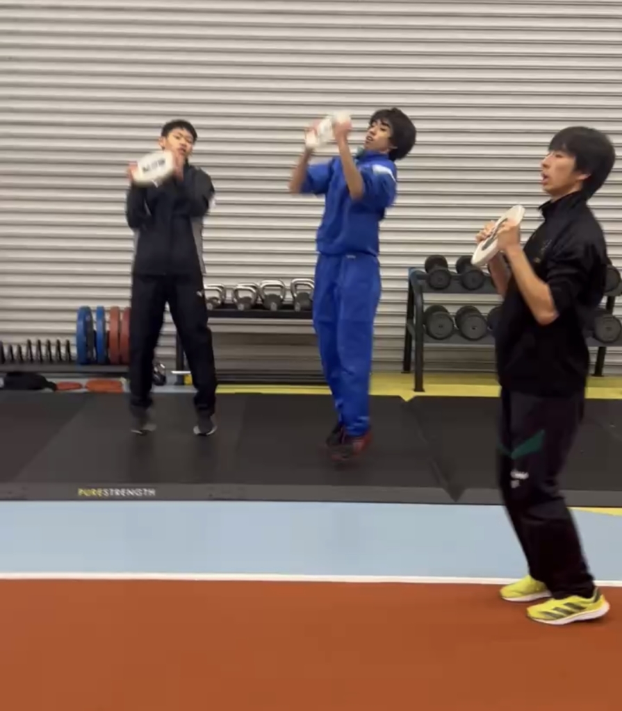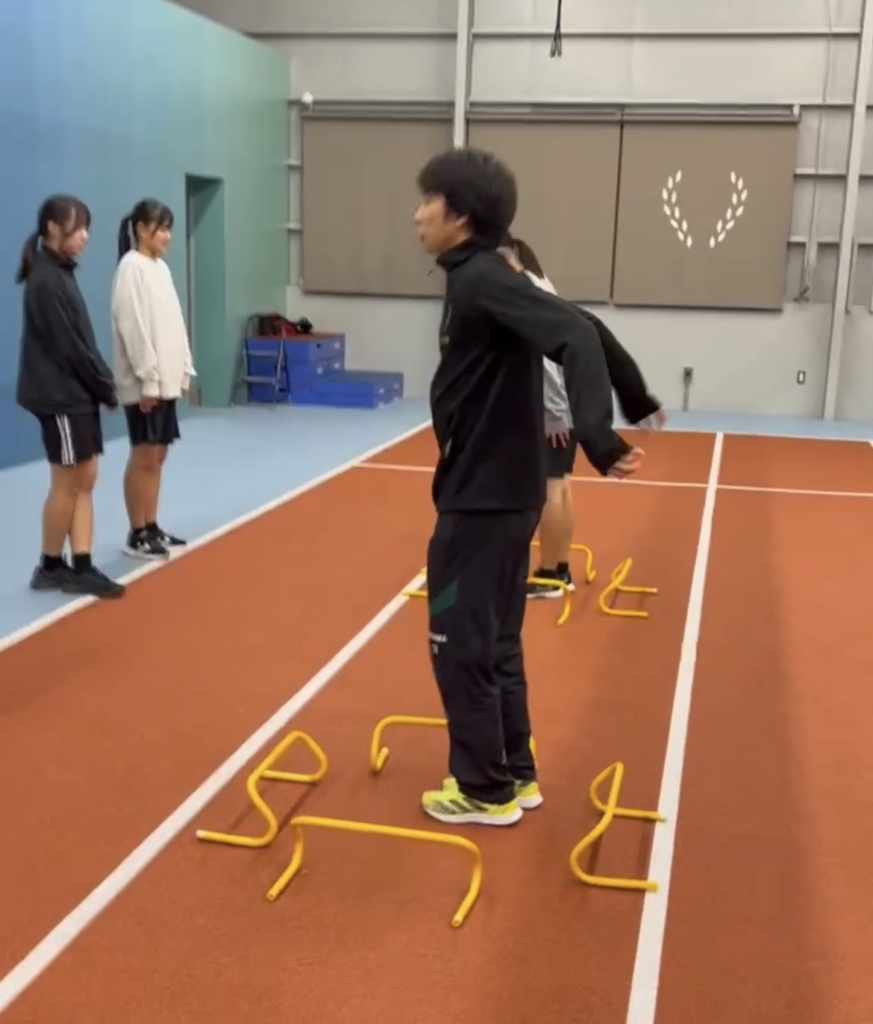 その後は、体が冷えないようにテンポよくメニューをつなげて、ハードルドリル+マーカー走、バウンディング、ホッピングを連続で実施🌺
