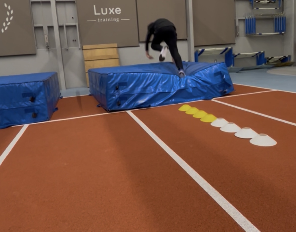 両足連続ジャンプや片足連続ジャンプなど、バランスとリズム感が求められる動きにチャレンジ🥝