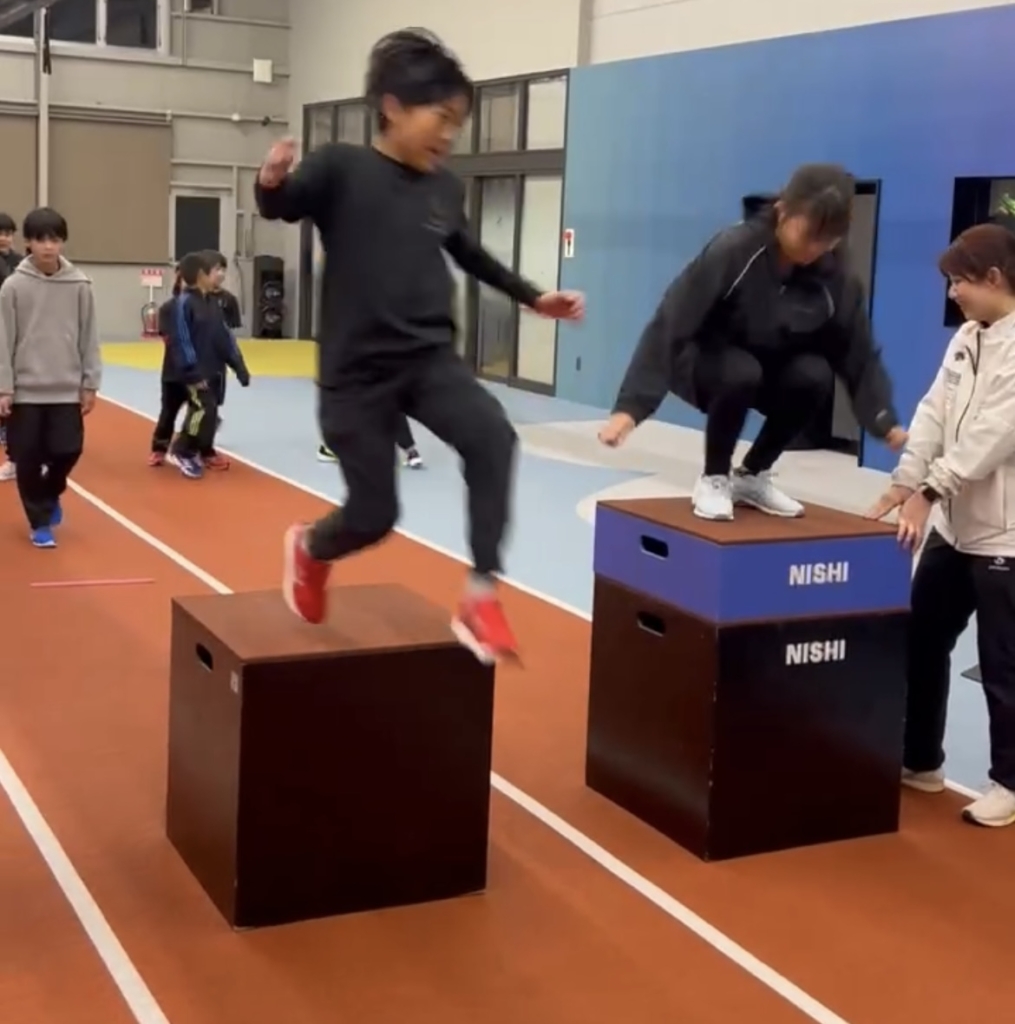 しっかり体を温めたあとは、BOXジャンプにチャレンジ!🍇