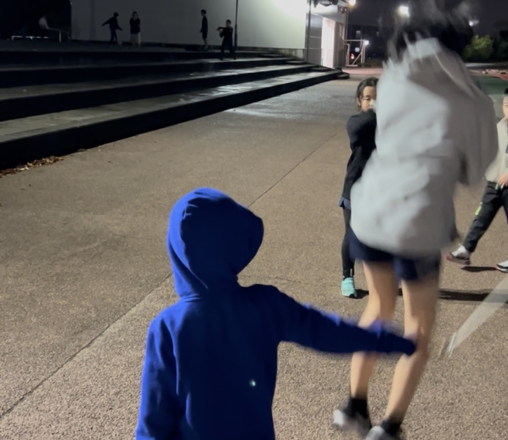 その後は、階段ジャンプ&ダッシュでさらに体を温めました。11月の冷え込みもあるため、種目間にはジョグを入れて体を冷やさない工夫をしながら進めました🐵