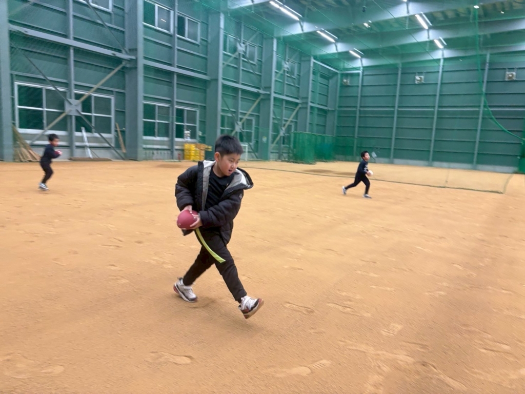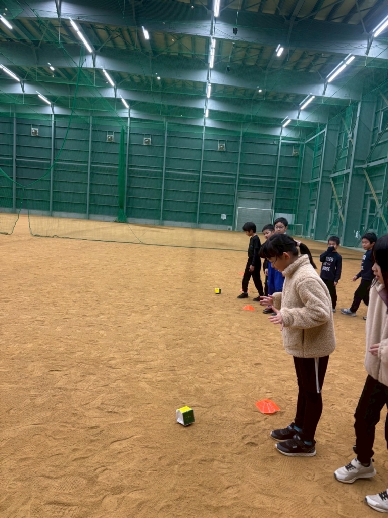 フロント投げ・サイド投げ・突き出し・オーバースローと、さまざまな投げ方に挑戦し、全身を使ったパワー発揮を行いました。