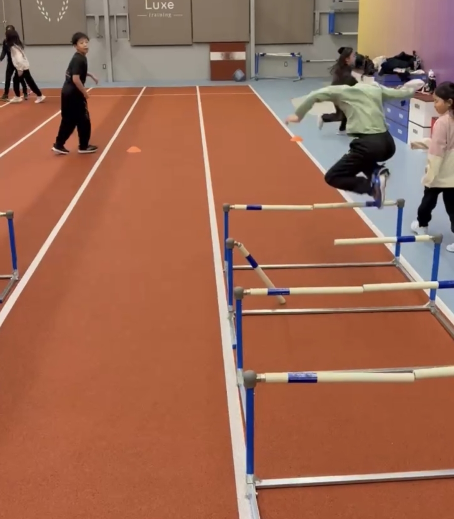 その後はハードル練習へ。ハードルまたぎから始め、1歩ハードル、3歩ハードルと段階的にレベルアップし、リズムや動きづくりを意識して取り組みました。