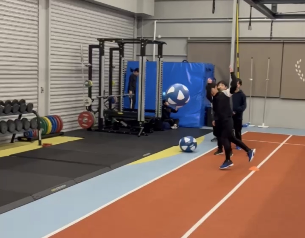 まずは8分間のジョグで体を温め、その後ボールワークやショートスプリントを行い、動きのキレを高めました。