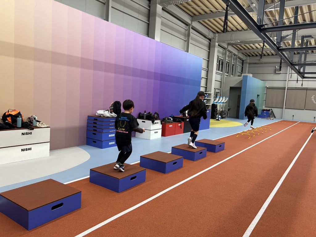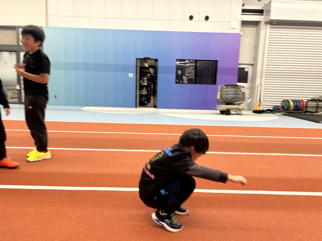 子どもたちの元気がとても良かったため、急きょジャンプ種目を追加!ホッピングと立ち幅跳びも行い、脚力や瞬発力をたっぷり鍛えました。