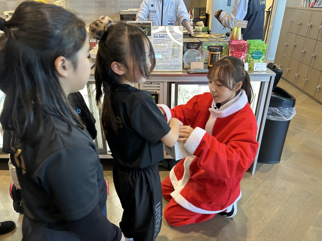 締めくくりは、新村コーチサンタからのクリスマスケーキ配り🎂