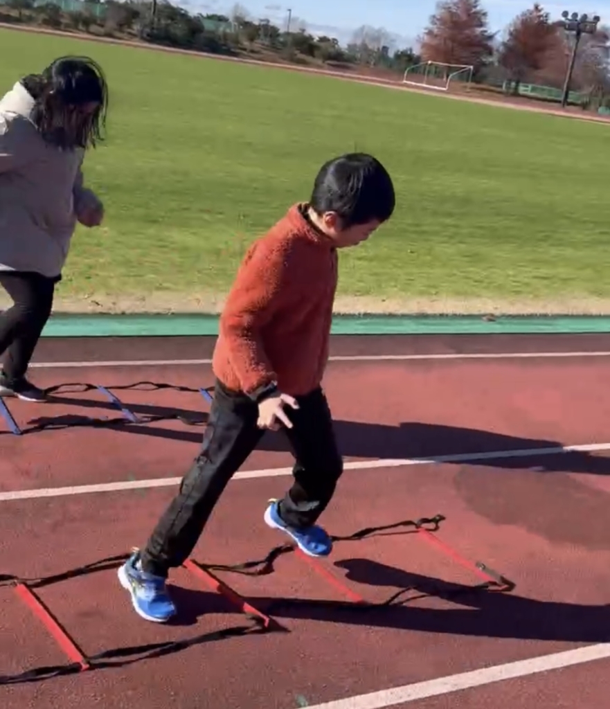 ジョグ、体操、ラダーでしっかりウォーミングアップ🍇
