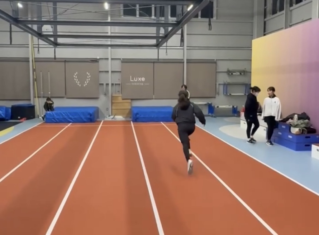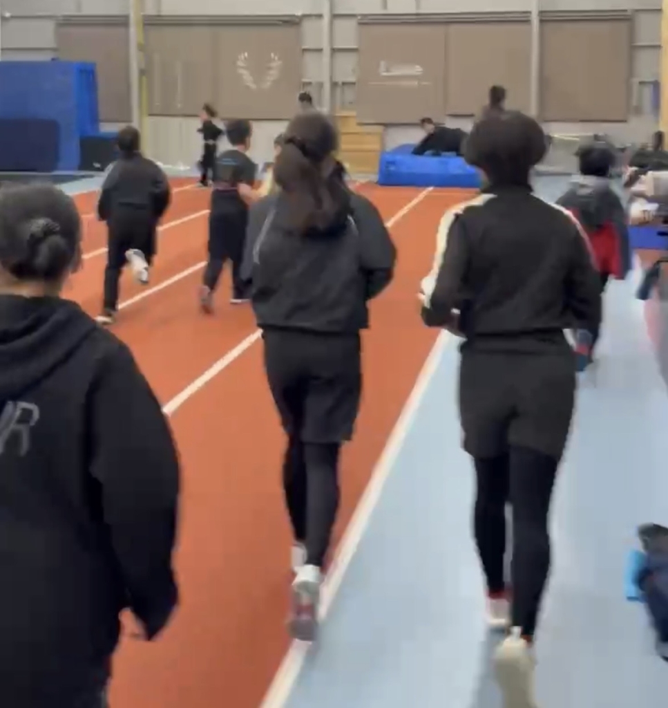ウォーミングアップとしてまずは3分間走を行い、徐々に体を温めながら心拍数を上げていきました。