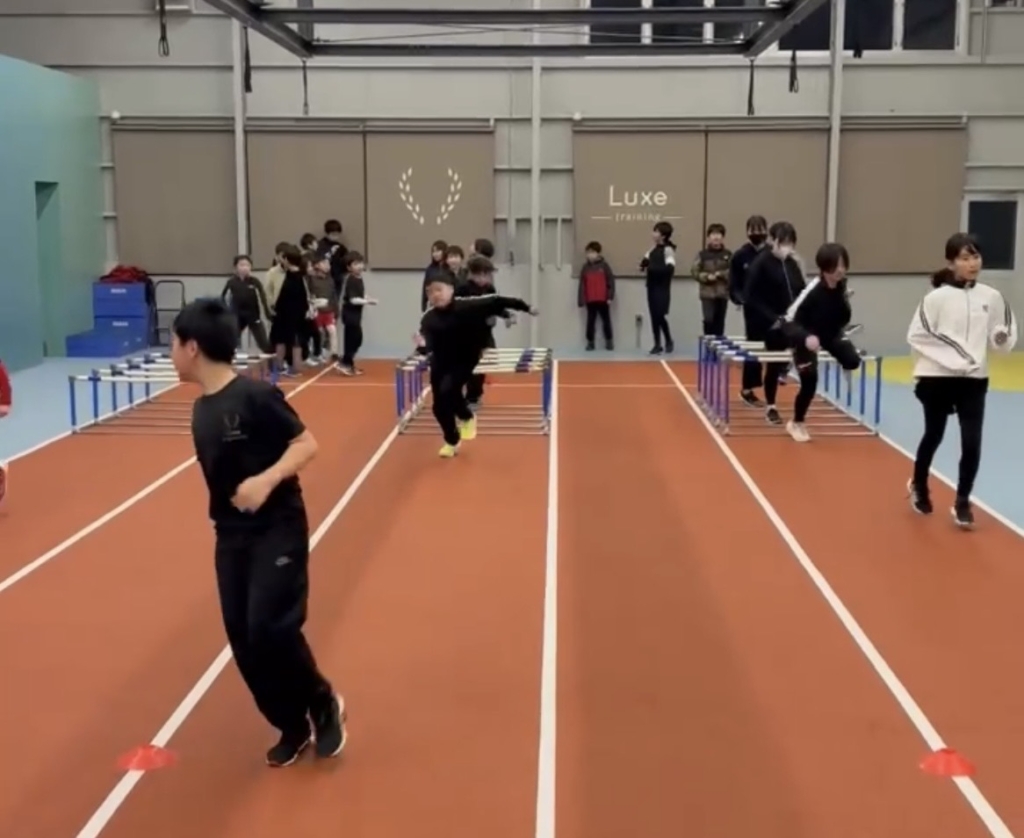 続いてハードルドリルでは、リズムよく体を動かすことを意識し、足の運びや姿勢を確認しました。