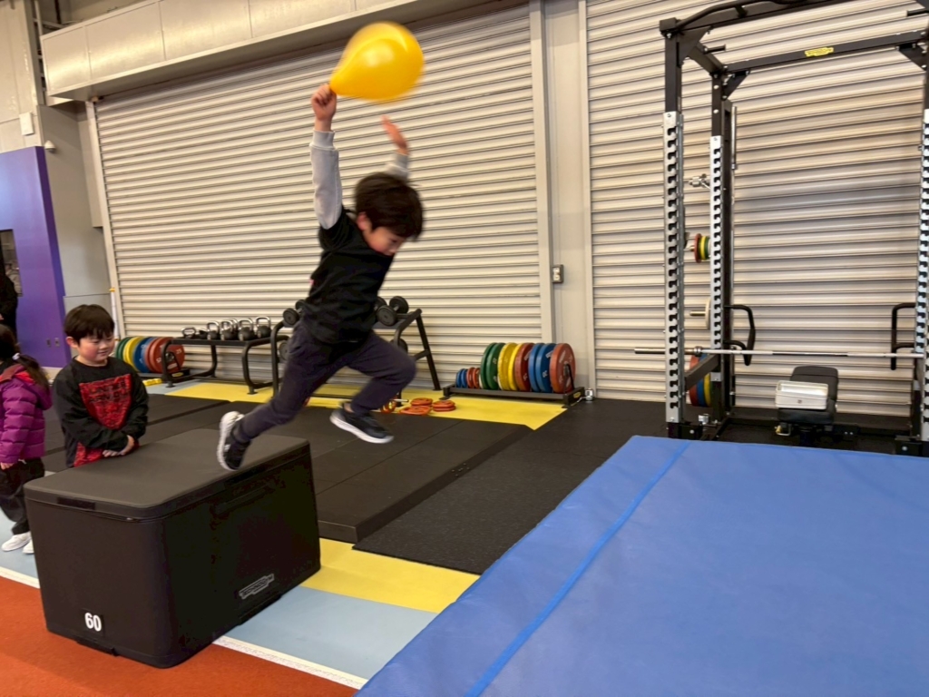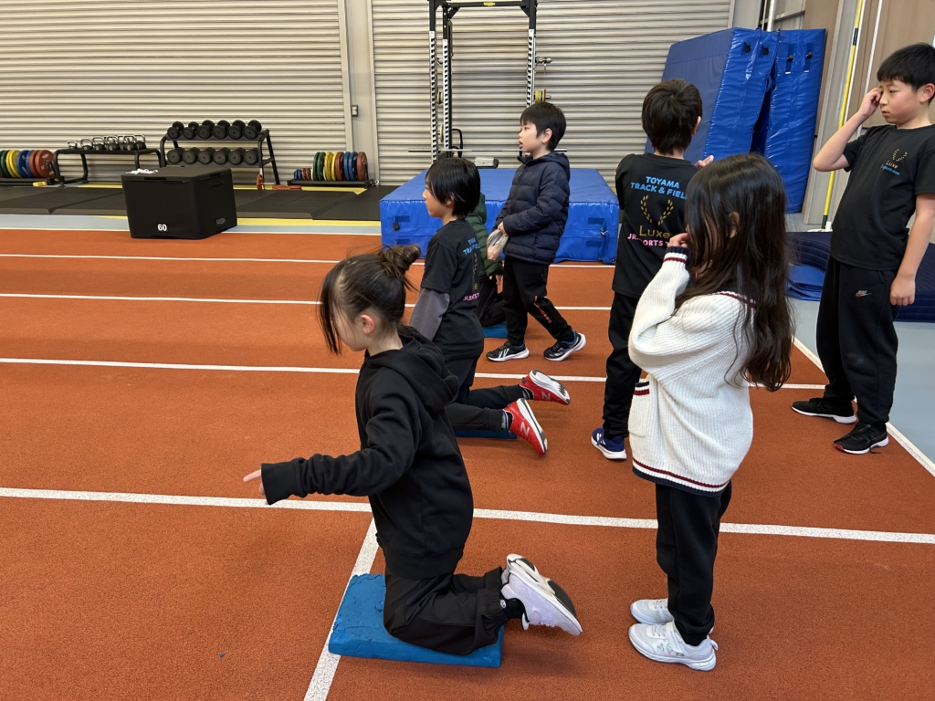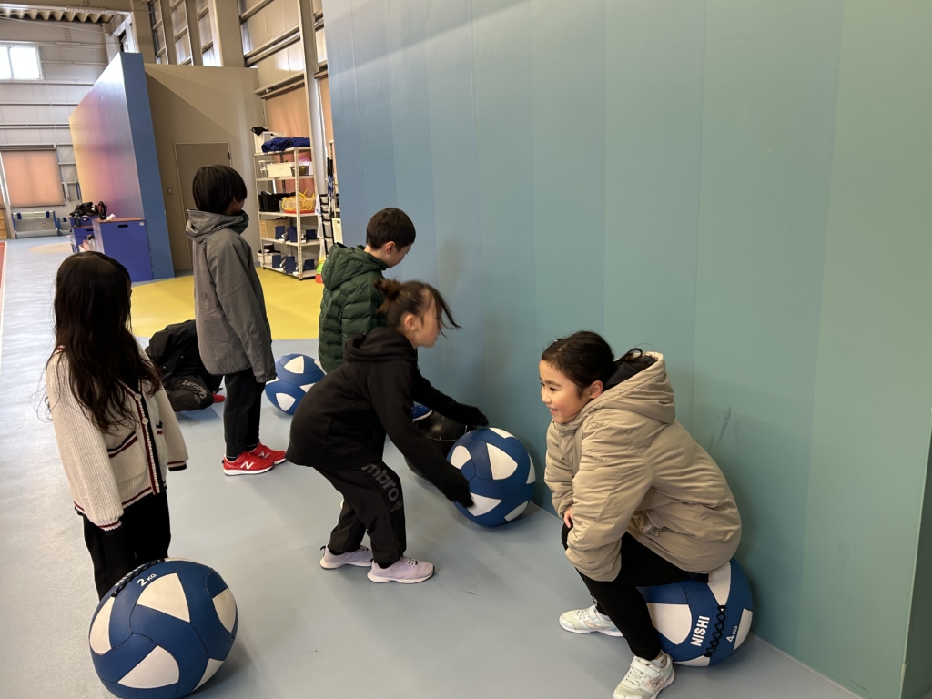 マットを使った立ち幅跳びでは、「もっと遠くへ!」を意識しながら、距離を伸ばして積極的にジャンプする姿が印象的でした。