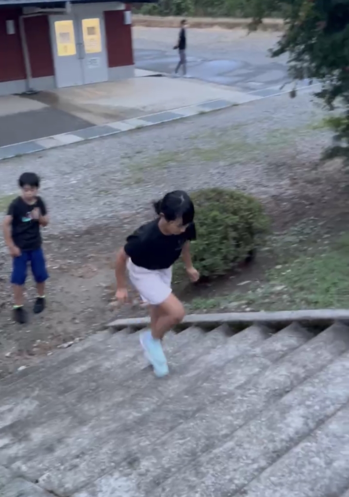 雨が止んでいたので外で段差や階段を使ったトレーニングを行いました🐡