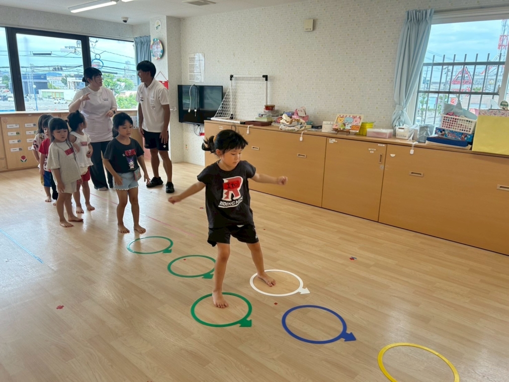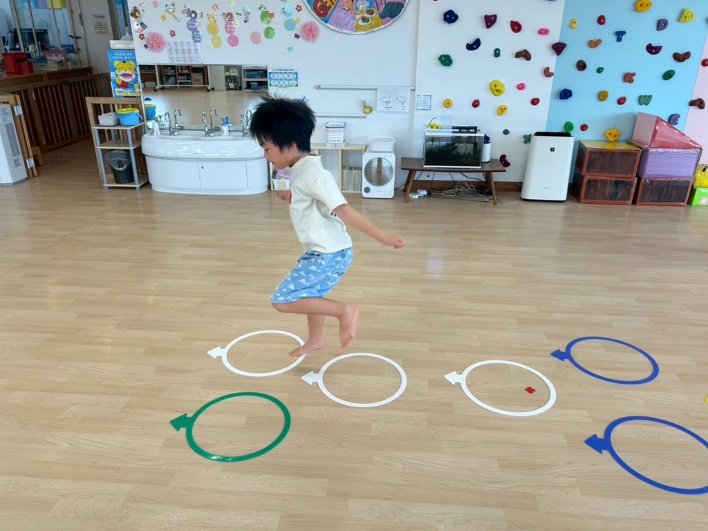 運動会で速く走るための腕振り指導や遊び要素を加えた瞬発力を上げるトレーニングに取り組みました🌼